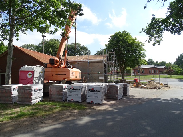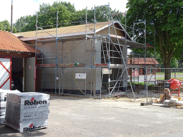 Der Neubau der Fahrzeughalle ist so gut wie abgeschlossen. Zur Zeit wird am Umbau des vorhandenen Gerätehauses gearbeitet. Anstelle der Kleiderhaken haben wir Spinde bekommen. Diese haben die Kameradinnen und Kameraden in Eigenleistung aufgestellt. Hier ein paar Eindrücke von der Bauphase: